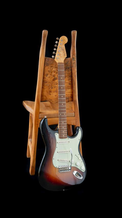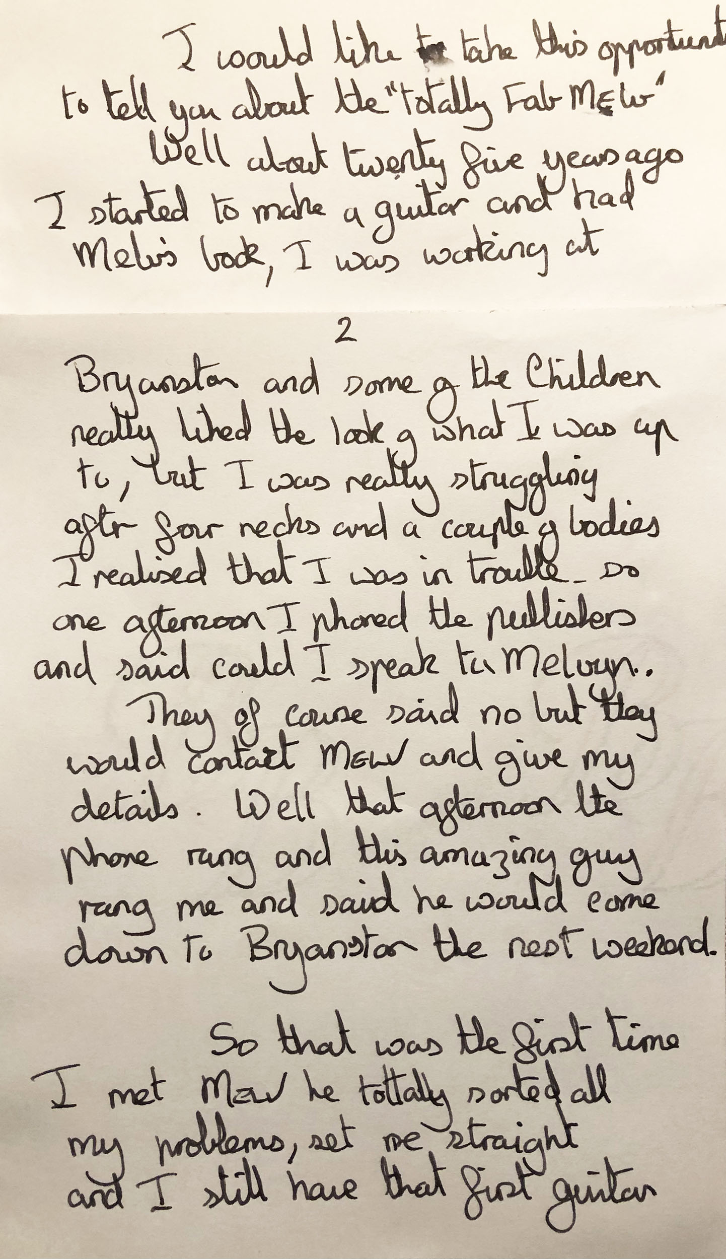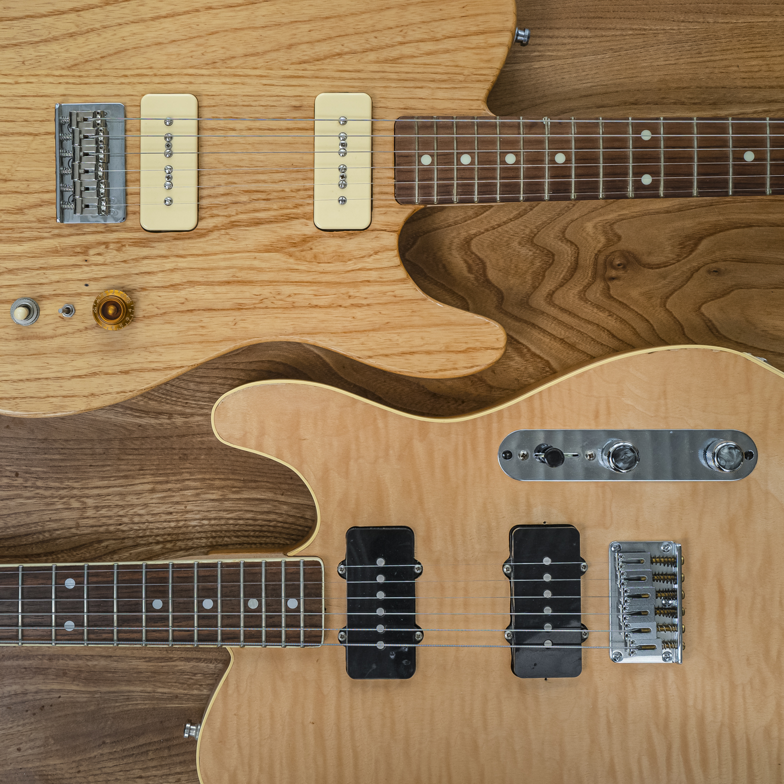 A selection of Melvyn’s beautiful hand made guitars, ranging in styles adapted from Les Paul’s, Telecasters, Stratocasters, Fling V’s and his own designs.